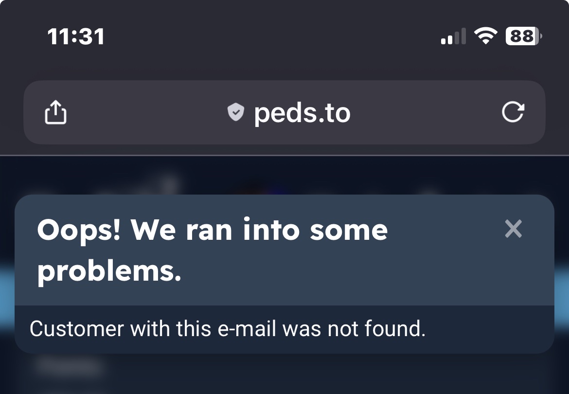 Error says there's no associated email.